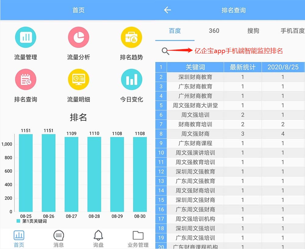 億企寶App:隨時(shí)隨地查看和管理關(guān)鍵詞排名、流量、訪問來路、詢盤,與客戶實(shí)時(shí)溝通互動(dòng)。
