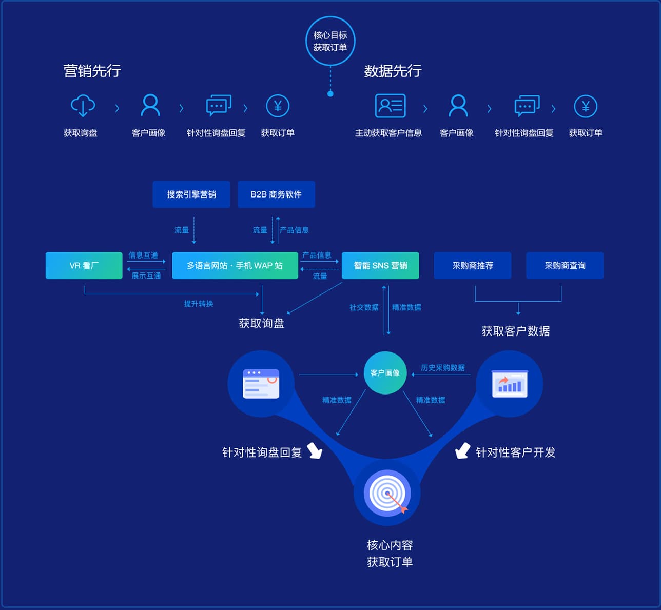 由Google首頁關(guān)鍵詞排名、客戶畫像、全球采購商推薦、全球采購商查詢、外貿(mào)快車商務(wù)軟件、SNS營銷以及外貿(mào)實(shí)戰(zhàn)培訓(xùn)組成的外貿(mào)快車智能網(wǎng)絡(luò)營銷矩陣,最大限度地在一個系統(tǒng)內(nèi)涵蓋全方位的網(wǎng)絡(luò)營銷渠道,真正實(shí)現(xiàn)了以大數(shù)據(jù)和云計(jì)算為基礎(chǔ)的智能網(wǎng)絡(luò)營銷。