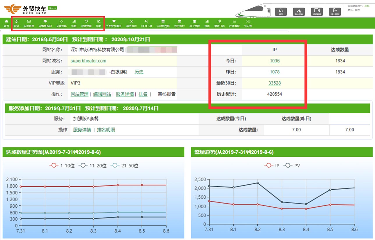 外貿(mào)快車智能監(jiān)控系統(tǒng)每天實(shí)時統(tǒng)計(jì)用戶網(wǎng)站的PV和訪問IP。