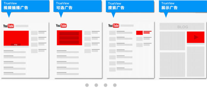 TrueView插屏廣告(In-stream Ads),號(hào)召性用語重疊式廣告,TrueView展示廣告 (Discovey Ads),導(dǎo)視廣告(Bumper Ads)和Youtube搜索廣告(Youtube Search)。