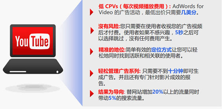 2012年,Google 正式推出向所有廣告主開放的AdWords for Video廣告平臺(tái)。 從名稱可以看出,新廣告平臺(tái)延續(xù)了Google Adwords關(guān)鍵詞競(jìng)價(jià)廣告系統(tǒng)的邏輯 廣告主可以根據(jù)用戶的搜索結(jié)果來投放視頻廣告。